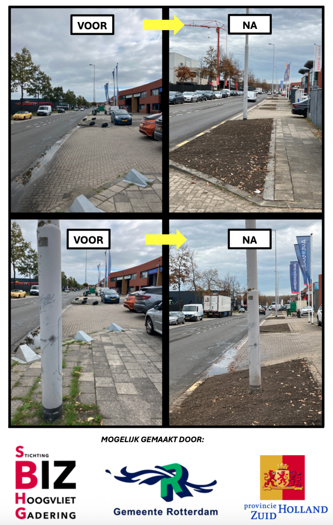 De vergroening van de trottoirs en inriteilanden op bedrijventerrein Hoogvliet Gadering verplaatst zich naar een volgende fase. Op korte termijn starten de werkzaamheden in de Klompenmakerstraat. Daar geldt op sommige locaties een tijdelijk parkeerverbod. Dit is met borden aangegeven.